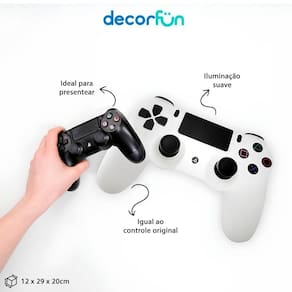 A Luminária Controle PS4 é o item perfeito para deixar sua estação gamer ainda mais estilosa. Com um design inspirado no icônico controle do 4 e luz difusa suave, ela proporciona um toque moderno e imersivo ao ambiente. Seu sistema bivolt garante praticidade, tornando-a ideal para qualquer espaço de jogos.