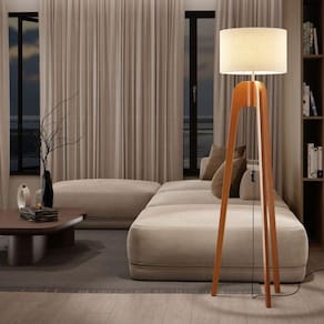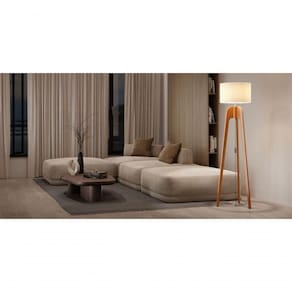 Com estrutura em madeira maciça e cúpula revestida em tecido Brugges, oferece iluminação aconchegante e difusa. É bivolt e compatível com lâmpadas E27 (não inclusas).