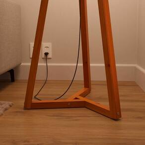 Fabricada com estrutura 100% em madeira maciça Pinus, possui acabamento em pintura semi brilho e cúpula revestida em tecido, proporcionando durabilidade e resistência. Com pés em madeira Pinus, seu design elegante se adapta a diversos estilos de decoração.