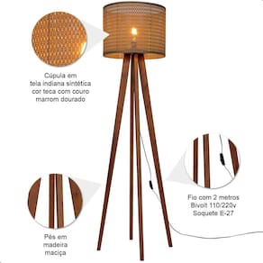 Ilumine seus momentos com o nossa Luminária De Chão Madri, uma peça que combina funcionalidade e estilo. Seja para criar uma atmosfera acolhedora ou simplesmente decorar o ambiente. Produzida com material de alta qualidade, conta com pés em madeira maciça, soquete E-27, cúpula em Tela Teca e cabo de energia bivolt 110/220 volts com comprimento de 2 metros. Está luminária adiciona um toque de elegância e charme a qualquer espaço. Com seu design moderno e acabamento impecável, é a escolha perfeita para iluminar seus dias e noites com beleza e praticidade.