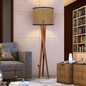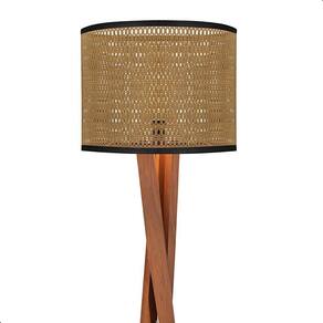 Luminária de Chão Paris com Pés de Madeira e Tela Teca Marrom 158cm