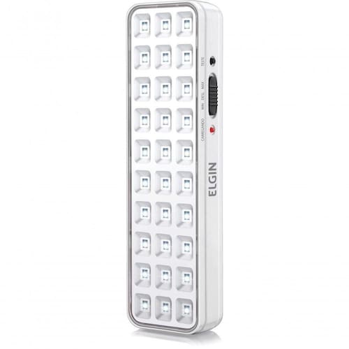 Luminária De Emergência 30 Leds Bateria De Lítio 2w - 48lem30l0000 LUMINÁRIA DE EMERGÊNCIA 30 LEDS BATERIA DE LÍTIO 2W - 48LEM30L0000 A Luminária de Emergência Elgin possui bateria de lítio, que não agride o ambiente. Sistema de iluminação de emergência completo com: sistema de supervisão da rede elétrica, carregador de bateria, bateria e fonte de luz, integrados em um único produto, compacto, podendo ser aplicado nas mais diversas situações. Característica Técnica: Potência: 2W; Tensão: 100-240V; Frequência: 50/60Hz; Fluxo Luminoso: 100 lm (fluxo maximo) / 55 lm (fluxo minimo); Temperatura de Cor: 6500K; Vida Útil: 3h (fluxo máx.) / 6h (fluxo mín.). 300 recargas; Tempo de Recarga: 48h em 127V e 24h em 220V; IRC:>70; IP: IP20. Peso do Produto: 0,115 Kg; Dimensões do produto (AxLxC): 2,8 x 5,5 x 20,2 cm.