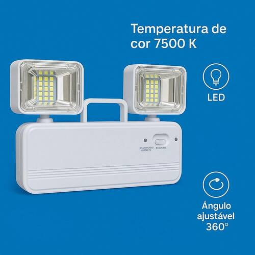 Luminária de Emergência Luz Para Saídas De Emergência Garanta segurança e iluminação imediata com esta luminária de emergência LED 8W, ideal para residências, comércios e escritórios. Com 1200 lúmens, ela proporciona luz branca fria intensa 7500K , perfeita para momentos de falta de energia. Seu sistema bivolt automático 110V/220V facilita a instalação em qualquer ambiente. A luminária acende automaticamente quando a energia cai, e sua bateria recarregável interna garante horas de autonomia. Design compacto e moderno na cor branca, pode ser fixada ou Utilizado portátil. Produto confiável, durável e eficiente. Especificações Técnicas Tipo: Luminária de emergência LED Potência: 8W Fluxo Luminoso: 1200 lúmens Temperatura da Cor: 7500K branco frio Tensão: Bivolt automático 110V / 220V Cor: Branco Autonomia: De 2 a 6 horas dependendo do uso Ativação automática: Sim Instalação: Parede ou uso portátil Bateria: Recarregável interna Marca: Não Informado