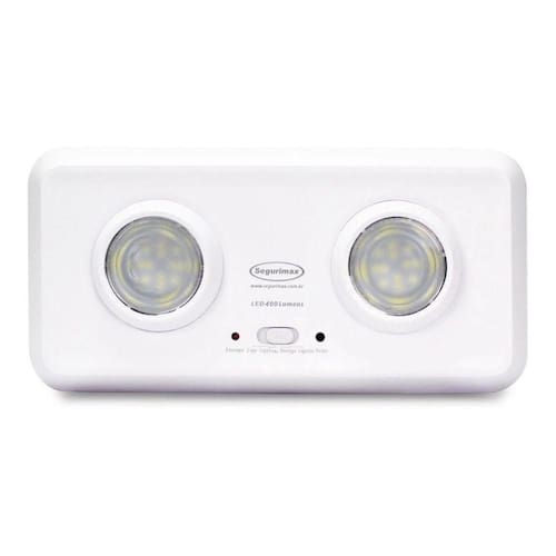 Luminaria De Emergencia Segurimax Led 400 Lumens Duo DESCRIÇÃO TÉCNICA A luminária 400 lúmens duo (LE400D) foi fabricada com a tecnologia Led, desenvolvida para iluminação de emergência (aclaramento). Possui bateria de lítio, proporciona uma vida útil mais longa e uma melhor performance do produto. Por ser de lítio, não ocorrem vazamentos, sendo ecologicamente correta. Econômica, proporciona autonomia com maior durabilidade e ótima iluminação. Pode ser facilmente instalada, manuseada e transportada. Acende automaticamente na falta de energia elétrica. Indicado para: Utilizada em ambiente internos, tais como: corredores, escritórios, hotéis, restaurantes, estabelecimentos comerciais, residenciais, etc. Cuidados e Manutenção: Para maior vida útil do equipamento, recomenda-se a descarga da bateria a cada 3 meses. O procedimento auxilia na preservação das características iniciais do produto. Laudos e Certificados: Este equipamento atende os requisitos exigidos pelas normas nacionais (nbr 10898). Informações Adicionais: Possibilita montagem sobre caixa passagem 4x2 o que reduz o custo na instalação, garantindo um acabamento diferenciado. *Imagens meramente ilustrativas. ESPECIFICAÇÃO TÉCNICA Fluxo luminoso: 400 lúmens Quantidade de LEDs: 32 LEDs (16 em cada farol) Acendimento Individual dos Faróis: Sim Bateria: Lítio 3.7V 2500mAh Vida útil da bateria: 500 ciclos Alimentação: 110/220V (50/60Hz) Consumo de energia: 4 W(110V) / 13,2W(220V) Autonomia: 3 horas Temperatura de Operação: 0-50C Requisitos: NBR 10898 Área de Cobertura: 100m Grau de proteção: IP20 Dimensões: 225 x 45.5 x 110mm Fabricado: Plástico abs Peso: 395g Botão de teste: Sim Ean: 7898597854068