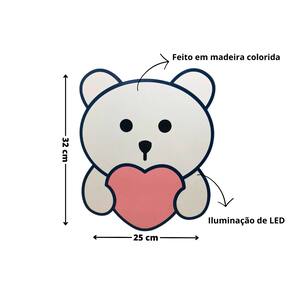 Luminária de ursinho love é feita em MDF colorido de 3mm, iluminação de LED com fonte de energia bivolt (110/220v) com acabamentos feitos a mão com muito carinho e dedicação. Ideal para decoração de ambientes como quartos infantil, sala de estar, dentre outros.