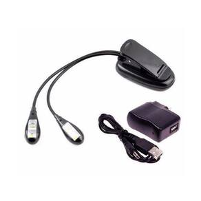 Luminária De Led Para Estante De Partitura Haste duplas com 4 leds Modelo: CLS 4 4 Led's de 0,5 w emite luz branco suave, com quatro níveis de brilho e 2 ajustes diferentes de luminosidade. Aplicação: Estante de música, piano, leitura. Uso indicado para ambientes internos. Portátil: Com Ajuste de foco através da haste; Alimentação 3 Pilhas AAA e ou conexão USB PIlhas e cabo USB inclusos Tensão de funcionamento: 5V/DC USB ou 3 pilhas AAA 1,5V Consumo Máximo: 100mA Fixação Máxima: 32mm Comprimento do Cabo USB: 1 Metro Comprimento da Haste: 190mm cada Haste: Flexível Marca: Não Informado