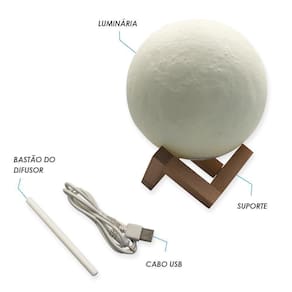 Luminaria de lua umidificador Luminaria de lua umidificador desenvolvida com tecnologia 3d, em formato de lua cheia, essa luminária será um belo item de decoração para sua casa. Possui 3 variações de cor, que você pode mudar conforme toque, acompanha um suporte de madeira que impede a lua de ficar no chão, além de deixar ainda mais bonito o objeto. a luminária é 2 em 1, sendo também um umidificador de ar. É ideal para dias mais secos e, principalmente para ambientes com ar condicionado. Basta adicionar um pouco de água e algumas gotas de óleo essencial de sua preferência. possui 07 diferentes cores, deixando o ambiente na tonalidade escolhida.- é preciso apertar o pino até a cor que deseja. Modo de usar 1. Abra a tampa do reservatório.2. Coloque o bastão do difusor na tampa do reservatório.3. Adicione água ao reservatório.4. Feche a tempa firmemente. informações: - conta com luz de led trazendo mais economia, diferente das demais. - difusor com aromas. - melhora a respiração graças ao umidificador. - entrada usb acompanha cabo .- controle da iluminação e umidificação por pinos metálicos dispostos na tampa. - a névoa do umidificador sai através de um pequeno buraco embaixo da lua. especificações:material: pvc, madeira e componentes eletrônicos. dimensões:- diâmetro da lua: 15cm.- altura com suporte: 20cm. peso: 0,260g aprox. capacidade liquida: 1200ml.Potência max: 2w.Corrente: 400mavoltagem: 5vduração: + ou - 30hr. - acompanha usb. contém01 luminária umidificador 3d formato de lua com suporte de parede Ean: 7908281353842