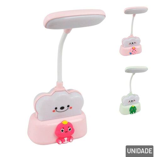 Luminária de Mesa 24cm EM LED Dinossauro Col Deixe a imaginação brilhar com a encantadora Luminária de Mesa em LED de 24cm! Perfeita para quartos infantis, espaços de leitura ou cantinhos especiais, essa luminária combina magia, funcionalidade e conforto visual em um só produto. Carregamento através de cabo USB (Incluso).\nInspirada no universo dos Dinos, a luminária traz um visual delicado com detalhes de Dinossauro em relevo e cores suaves, tornando-se um item decorativo encantador para crianças, adolescentes ou amantes do estilo cute. A luminária oferece dois modos de iluminação em LED, ideais para diferentes momentos do dia.\nSeu corpo articulável com rotação de 360° proporciona total liberdade para ajustar o foco da luz conforme sua necessidade, otimizando o espaço e garantindo uma experiência personalizada. Compacta e elegante, ela combina perfeitamente com escritórios, quartos, salas de estudo e home offices.\nEspecificações:\nMarca : TINGS\nTipo de material : Componentes Eletrônicos, Plástico\nCores ou Estampa : Color\nDimensões do Produto : 24 X 10,5 X 7,5 CM\nDimensões da Embalagem : 13 X 11 X 8,5 CM\nPeso Bruto (Gramas) : 0.176