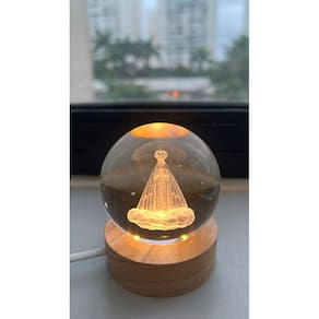 Com base em madeira e globo em cristal transparente, combina espiritualidade e elegância em uma peça compacta e sofisticada. Ideal para uso em quarto, mesa de cabeceira, sala de estar, cantinho de oração, escritório ou como presente especial em datas religiosas.