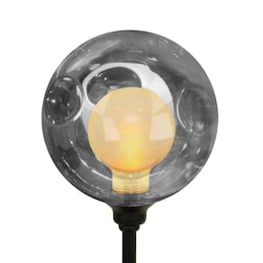 Com aproximadamente 12 cm de base, 12 cm de largura x 12 de altura da bola, totalizando aproximadamente 28 cm de altura total da luminária