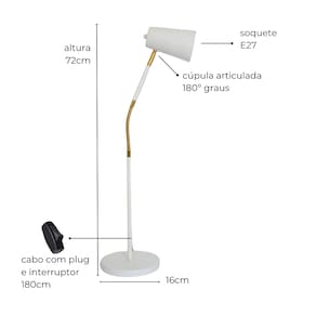 Um toque de elegância para o seu ambiente. A Luminária de Mesa Amélia é a peça que faltava para completar a decoração do seu espaço. Com um design industrial sofisticado e linhas clean, ela combina perfeitamente com diversos estilos. Sua estrutura em metal, com acabamento em pintura eletrostática, garante durabilidade e resistência. Características que fazem a diferença: Flexibilidade: O braço articulado permite ajustar a direção da luz de acordo com sua necessidade, seja para iluminar sua área de trabalho ou criar um ambiente mais aconchegante para leitura.Estilo: O design industrial da Amélia traz um toque moderno e elegante para qualquer ambiente, desde escritórios até quartos.Versatilidade: Seu soquete E27 permite a utilização de diversas opções de lâmpadas, como as LED, proporcionando uma iluminação eficiente e econômica.Facilidade de uso: O cabo com interruptor facilita o acendimento e o apagamento da luminária. Ideal para: Escritórios: Ilumine seu espaço de trabalho com estilo e praticidade.Quartos: Crie um ambiente aconchegante para leitura ou estudo.Salas de estar: Adicione um toque de sofisticação à sua decoração. Em resumo, a Luminária de Mesa Amélia é a escolha perfeita para quem busca: Um design moderno.Iluminação direcionada e eficiente.Durabilidade e resistência.Um toque de sofisticação para o seu ambiente.