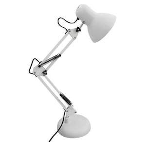 Luminária de mesa articuladal manicure escritorio branca Luminária de mesa Nada como ter em seu espaço conforto para trabalhar A luminária é um item essencial para garantir qualidade ao serviço a ser feito, além de ser um objeto lindo para decorar o espaço Ideal para desempenho de tarefas minunciosas, bancada de manicure e designer sobrancelhas, cílios de unhas/alongamentos;para mesa de escritório e home oficce. -cupula e base branca; -altura máxima de 60cm; -foco direcionável; -bivolt 127/220v; -para uso com lâmpada não inclusa fluorescente; -fio com 1m; -botão de liga/desliga no plug do fio; -soquete rosca e27; -tomada com 2 pinos; -marca m&c. Marca: Não Informado