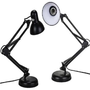 Com dois tipos de suporte, você pode escolher entre utilizar a luminária com base ou com garra para prender na mesa. Além disso, essa luminária possui um receptáculo comum que permite o uso de lâmpadas compactas econômicas, incandescentes ou led's, proporcionando versatilidade na escolha da iluminação.