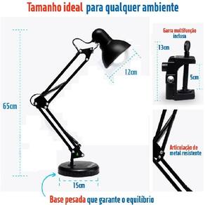 - Base Pesada: Proporciona estabilidade e segurança, garantindo que a luminária permaneça firme em sua mesa, mesmo quando ajustada para diferentes posições.