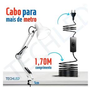 Techled É uma luminária de mesa que atende com maestria todo tipo de uso, desde pessoal até profissional. Possui articulações firmes de metal que permitem chegar na posição ideal para o momento. Seu design clean e elegante faz com que ela se destaque em qualquer ambiente, desde residências, até locais de trabalho. Para completar sua versatilidade acompanha uma base e uma garra para ser disposta em qualquer espaço. corpo flexível e estável: Suas articulações reforçadas de metal fazem com que ela não só chegue na posição ideal, mas que também fique fixa para sua utilização. Para algumas posições é recomendado o uso da garra. cúpula rotatória: A cúpula gira facilmente para cima, para baixo e para os lados, dando o controle preciso de onde quer que a luz aponte. base pesada e compacta: Base ponderada que sustenta o produto. Projetada para proporcionar uma bancada ou mesa mais organizada e limpa, ocupando um pequeno espaço. garra multifuncional: Sustentação para qualquer posição que a luminária possa chegar. A garra é do tipo parafuso, que não deixa marcas de mordida na mesa. Possui 3 opções de encaixe para se adequar ao seu uso. material metálico qualificado: Material metálico qualificado em toda luminária, trazendo uma longa durabilidade para o produto. on / off: Muito fácil de controlar, basta pressionar o botão liga/desliga no cabo de alimentação. Especificações técnicas: Frequência: 50/60hz Voltagem: 110/220v - bivolt Soquete: e27 Suporte: base e garra Peso aproximado: 1,4kg Cabo: 1,70m Componentes: base e garra multifuncional Nós da techled nos importamos com cada detalhe. Confira nossa linha de produtos com qualidade premium e preços acessíveis. Você merece um techled Marca: Não Informado