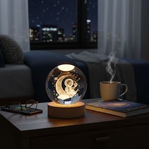 Transforme qualquer ambiente em um espaço aconchegante e cheio de charme com a Luminária Bola de Cristal 3D.