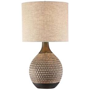 Usa uma lâmpada de base média padrão máxima de 150 watts não incluída. Soquete do interruptor liga desliga. Candeeiro de mesa de estilo moderno Mid Century da 360 Lighting. Base com acabamento em castanho madeira com padrão texturado. Construção cerâmica. Tonalidade de tambor de cor de aveia Marca: Não Informado