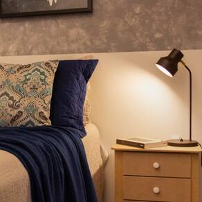 Sua cúpula articulada em 180° permite direcionar a luz exatamente onde você precisa, ideal para leitura, trabalho ou para criar um clima aconchegante. Além disso, o botão liga/desliga na base facilita o uso.