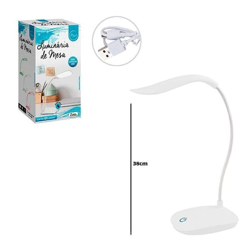 Atenção: imagens meramente ilustrativas:Contém:01 un - luminária verde de mesa - recarregável. branco Uma ótima luminária para enfeitar sua mesinha de computadorÓtima para iluminar e até mesmo estudar, linda para decoração do seu quarto ou escritórioA luminária contém um botão touch para ligar e desligar, possui 3 niveis de luzes para escolher a melhor, fraca, médio ou forteRecarregável e acompanha o fio usb.Garanta já a suaCaracterísticas do produto:Material: plástico.Com botão touch.Com entrada usb.Acompanha cabo.Potência: 5v/ 1a.Bateria: 300mah.Medidas aproximadas:Comprimento: 38 cm.Largura: 13 cm.