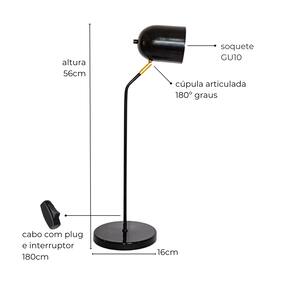 Fabricante: Lumim, BrasilDesigner: Lumim A luminária de mesa Ralph é mais do que apenas uma fonte de luz, é uma peça de design que eleva a estética de qualquer ambiente. Pensada para arquitetos, designers de interiores e apreciadores de bom gosto, a Ralph combina a funcionalidade da iluminação com a beleza de linhas minimalistas e materiais nobres. Um Design que Transcende Tendências: Com sua estética, a Ralph se adapta a diversos estilos de decoração, desde os mais clássicos aos mais contemporâneos. Sua forma elegante e clean, aliada à versatilidade da cúpula articulada em 180°, permite direcionar a luz exatamente onde você precisa, criando diferentes atmosferas e destacando elementos da sua decoração. Construída para Durabilidade: Fabricada em alumínio e ferro, com pintura eletrostática, a Ralph é sinônimo de resistência e durabilidade. Seu acabamento impecável resiste à passagem do tempo, mantendo sua beleza por muitos anos. A resistência à maresia a torna uma opção versátil, perfeita para ambientes internos. Iluminação Eficiente e Personalizada: O soquete G10 permite a utilização de lâmpadas LED (não inclusas), proporcionando uma iluminação suave e eficiente. Funcionalidade e Praticidade: A Ralph possui um cabo com plug e interruptor, com 180cm de comprimento, facilitando a instalação e o uso.