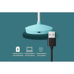 Interface de Recarga: Utiliza um cabo USB padrão para a recarga, tornando-o conveniente e compatível com várias fontes de energia.