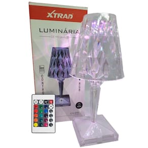 Luminária de mesa Touch Rgb Controle Remoto Deixe o seu quarto ou sala mais iluminados com esta Luminária de mesa TOUCH Com formato fashion, seu ambiente fica decorado com uma iluminação em formato de cristais tornando o ambiente relaxante e confortável. Possui 3 níveis de temperatura e 16 cores de LED para acompanhar seu humor e disposição durante o dia-a-dia.