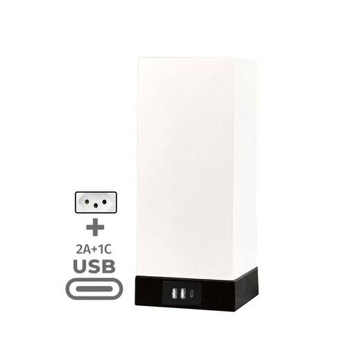 Abajur e luminária de mesa modelo TRIO MINI, com 3 portas (2 USB tipo A e 1 tipo USB C) de carregamento rápido 17W para: smartphones, tablets, power banks, Kindle, fones de ouvido, smart watches, caixas de som etc.