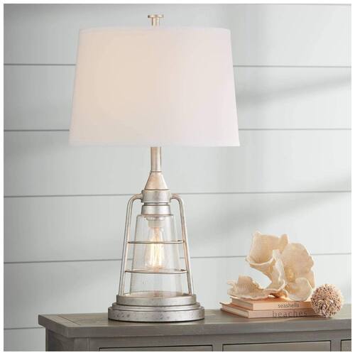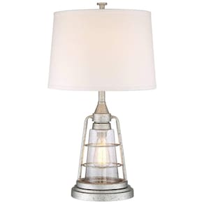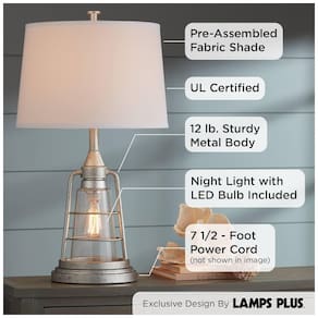 Usa uma lâmpada de base padrão média máxima de 150 watts na parte superior não incluída. Inclui uma lâmpada estilo Edison de LED de 4 watts para a luz noturna 2200K, comparável a uma incandescente de 60 watts. O design de lanterna de inspiração industrial com luz noturna embutida é da Franklin Iron Works. Acabamento em metal galvanizado pintado à mão. Ideal para decoração de quartos costeiros ou vintage Marca: Não Informado