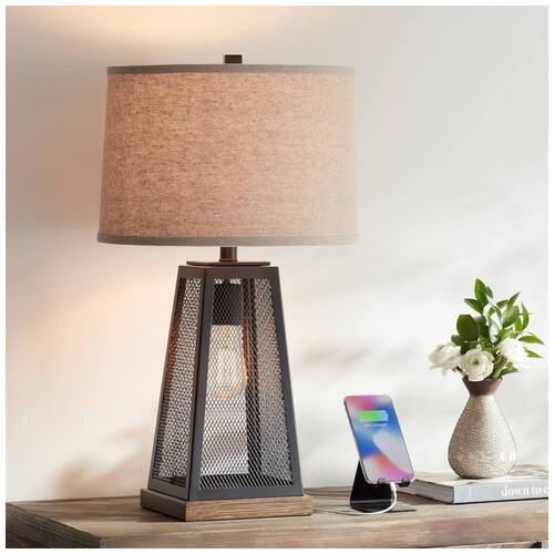 Usa uma lâmpada de base média padrão E26 de no máximo 150 watts não incluída para a luz principal. Interruptor de soquete de 4 vias. Design de lâmpada de acento de luz noturna. Inclui uma lâmpada noturna de filamento LED Edison de 7 watts âmbar. Comparável a uma incandescente de 60 watts. A porta USB integrada permite recarregar facilmente telefones inteligentes. Porta USB tipo 2A. Estilo rústico de fazenda da Franklin Iron Works. Acabamento em bronze. Base de malha metálica. Sombra de material de serapilheira Marca: Não Informado