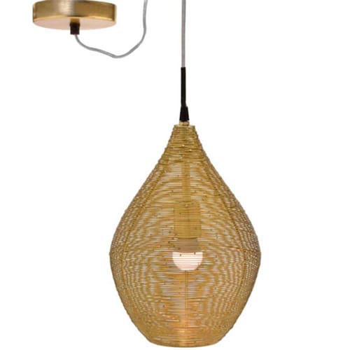 Luminária de metal para teto dourada 30x38cm. Observação: As cores dos produtos podem sofrer variações em função das características do monitor e do ambiente durante sua visualização. Observação: Não acompanha lâmpada. Matéria prima: metal Medida aproximada da embalagem: (Compr. X Larg. X Alt.): 24x26x36 cm.