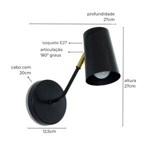 Fabricante: Lumim, BrasilDesigner: Lumim A Luminária de Parede Clara é uma escolha sofisticada que combina um design moderno com um toque de delicadeza. Com sua haste levemente curvada para cima, esta luminária oferece uma estética única e contemporânea, perfeita para quem deseja agregar um toque de elegância discreta a qualquer espaço interno. Feita em alumínio e ferro com pintura eletrostática de alta qualidade, a Luminária Clara é resistente e durável, inclusive à maresia, garantindo que ela permaneça sempre impecável, mesmo em locais com maior umidade. A sua cúpula proporciona uma iluminação direta e suave, ideal para criar uma atmosfera acolhedora em salas de estar, quartos, corredores ou escritórios. Compatível com lâmpadas LED de soquete E27 (não inclusas) e com tensão bivolt, a Luminária Clara é prática e eficiente, oferecendo flexibilidade na instalação em diferentes ambientes internos com cabo de 20 cm para instalação.