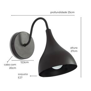 Fabricante: Lumim, BrasilDesigner: Lumim A Luminária de Parede Joana é uma peça que combina design minimalista e um toque de originalidade, perfeita para quem deseja uma iluminação que se destaque pela elegância e simplicidade. Com uma cúpula fixa em formato de gota, a Joana traz um charme especial aos ambientes, adicionando um elemento de interesse visual que complementa diversos estilos de decoração. Construída em alumínio e ferro com pintura eletrostática de alta qualidade, a Luminária Joana é resistente e durável, inclusive à maresia, sendo uma opção ideal para ambientes internos que exigem durabilidade e estilo. A cúpula fixa proporciona uma iluminação direta e eficiente, perfeita para criar uma atmosfera acolhedora em salas de estar, quartos, corredores e escritórios. Compatível com lâmpadas LED de soquete E27 (não inclusas) e com tensão bivolt, a Joana oferece uma solução de iluminação prática e econômica. Seu cabo de 20 cm para instalação, proporcionando praticidade no uso. Indicada para áreas internas, a Luminária de Parede Joana é uma escolha versátil para quem busca um toque de elegância discreta com um design único. Recomendações de Uso e Manutenção: Para preservar a Luminária de Parede Joana sempre em excelente estado, recomenda-se a limpeza com um pano seco e macio, evitando produtos abrasivos e solventes que possam comprometer o acabamento.