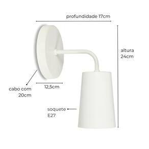 Fabricante: Lumim, BrasilDesigner: Lumim A Luminária de Parede Valentina é a escolha perfeita para quem busca uma peça de iluminação que combine simplicidade e sofisticação em um design compacto. Com uma cúpula pequena e fixa, a Valentina oferece uma iluminação direta e eficiente, sendo ideal para adicionar um toque de elegância discreta a ambientes internos, como salas de estar, quartos, corredores e escritórios. Seu design clean e minimalista a torna versátil, complementando diferentes estilos de decoração, desde o contemporâneo até o clássico. Fabricada em alumínio e ferro, com acabamento em pintura eletrostática de alta qualidade, a Luminária Valentina é resistente à maresia, o que a torna uma escolha robusta e confiável para ambientes internos que exigem qualidade e estilo. Compatível com lâmpadas LED de soquete E27 (não inclusas) e com tensão bivolt, a Valentina é prática e eficiente, proporcionando uma iluminação econômica e fácil de instalar. Cabo de 20 cm para instalação. Indicada para áreas internas, a Luminária de Parede Valentina é uma excelente opção para quem deseja unir funcionalidade e beleza em um projeto de design de interiores. Recomendações de Uso e Manutenção: Para manter a Luminária de Parede Valentina sempre em ótimo estado, recomenda-se a limpeza com um pano seco e macio, evitando o uso de produtos abrasivos e solventes que possam comprometer o acabamento.