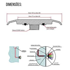 Luminária de piscina 12v 9w 125mm cp.Oring.Br branco 3000k Luminária de piscina 9w 12v 125mm ip68 led 3000k corpo branco A luminária para piscina 9w iluctron foi desenvolvida em policarbonato e seu diâmetro é de 125mm. De fácil instalação, é ideal para uso submerso ip68 e oferece alta luminosidade, alcançando uma área de até 6m de iluminação. Pode ser aplicada em escadas, prainhas de piscinas, piscinas alvenaria, vinil ou fibra e chafarizes. Especificações: - tecnologia led smd; - ângulo de abertura dos led's de 120; - à prova d'água ip68 - uso submerso ; - foi desenvolvida cuidadosamente com materiais de qualidade para garantir alta proteção contra intempéries cloro, sol, maresia, etc ; - tensão de alimentação: 12vcc estabilizada; - corpo com 125mm de diâmetro. - consome 0,75a por luminária Fixação: - sistema de rosca cnica bsp com diâmetro de 20mm 1/2 , conforme imagem; - cabo de ligação: 2x0,50mm com 1,5m de comprimento. Produto exclusivo iluctron e fabricação 100% nacional.