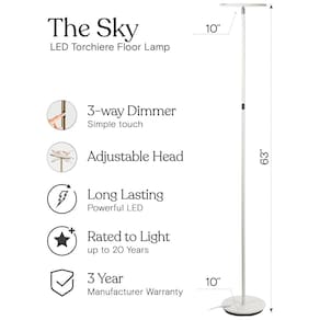 ILUMINAÇÃO SUPER BRILHANTE 150 W A LÂMPADA DE TOCHA LED EQUIVALENTE ACENDE UMA SALA INTEIRA Você quer uma luz muito brilhante sem luminárias caras ou duras A lanterna Brightech Sky embala 2190 lumens em branco quente de 3000K o suficiente para iluminar uma sala grande Sua cabeça gira facilmente e brilha em qualquer direção que você precisar A LÂMPADA DE CANTO MODERNA É DIMMÁVEL DE 3 VIAS NOVA FUNÇÃO DE MEMÓRIA SALVA A CONFIGURAÇÃO DE BRILHO PARA A PRÓXIMA VEZ O Sky combina uma decoração moderna minimalista urbana casual e contemporânea A lâmpada do poste se encaixa facilmente nos cantos e a base desliza sob os sofás O dimmer integrado de 3 vias desta lâmpada de mastro vertical agora lembra sua configuração de brilho para a próxima vez que você ligá la e funciona com interruptores de parede LEDs com vida útil de 20 anos ECONOMIZE ENERGIA OBTENHA ALTO BRILHO NÃO ALTA WATTAGE Esses LEDs são avaliados para durar 20 anos assumindo 3 horas de uso por dia porque não desperdiçam energia como lâmpadas halógenas CFL e incandescentes Em vez de lâmpadas halógenas queimando 200 300 watts o Brightech Sky consome apenas 26 watts E você não precisa substituir nenhuma lâmpada porque a luz é integrada A temperatura de cor dos LEDs é de 3.000K de branco quente Economize dinheiro com o Brightech Sky DESIGN PESADO RESISTENTE E DA BRIGHTECH Projetamos o Sky pensando na segurança de seus filhos Sua base pesada e design robusto o tornam em torno de crianças e animais de estimação pois não tomba com facilidade A lâmpada LED não aquece para que você não se queime ao tocá la para reposicionar a luz As lâmpadas Brightech são construídas para durar e são as mais seguras do Voltagem 110V Marca: Não Informado