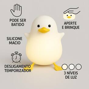 Luminária De Silicone Noturna Recarregável Toque Cores Pato Luminária Infantil Pinguim - Luz Noturna LED Deixe as noites das crianças mais aconchegantes e divertidas com a Luminária Infantil Pinguim. Com design encantador e luz suave em LED, ela cria um ambiente acolhedor, perfeito para ajudar os pequenos a relaxarem antes de dormir. Seu formato divertido e delicado é ideal para decorar quartos infantis, trazendo charme e segurança durante a noite. Características: Formato: Pinguim sentado com pés pendentes Luz LED suave e econômica Material macio e seguro para crianças Ideal como luz noturna ou decoração Fácil de usar e transportar Especificações Técnicas - Material: ABS/Silicone - Medidas: 13 cm altura - Modos de cores: Branco Quente, Vermelha, Azul, Amarelo, Rosa, Verde + Modo automático e oscilante - Potência: 1.5W - Tensão: 5V/1A - Bateria: 1200mAh - Autonomia: 10 a 16 horas - Tempo de carga: 2 a 3 horas Cuidados e Conservação - Limpar com pano seco e macio - Evitar exposição direta ao sol ou calor excessivo - Não utilizar produtos químicos na limpeza Conteúdo da Embalagem - 1x Luminária LED de Silicone Pato - 1x Cabo USB Tipo-C para recarga Perfeita para presentear e transformar o cantinho das crianças em um espaço cheio de magia e conforto O produto é novo Sim, todos os produtos são novos. Caso o produto não supra minha necessidade posso devolver ou trocar O produto tem Sim, todos os produtos têm . Se ainda houver alguma dúvida estamos a disposição para responder de segunda-feira a sexta-feira das 08:00 às 17:30. Marca: Não Informado