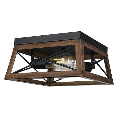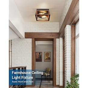 DEWENWILS Luminária de teto embutida Farmhouse para corredor de cozinha, persianas de metal vintage e acabamento de grão de madeira industrial complementam sua decoração existente, perfeita para quarto, sala de jantar, corredor, cozinha, lavanderia, varanda, foyer. Esta luminária de teto vintage funciona bem com lâmpadas reguláveis com um interruptor regulável, permitindo que você ajuste o brilho da luz preferido. Especificação: Tensão de entrada: 120VAC 60Hz Potência máxima de carga: Lâmpada incandescente 60W Halogênio 43W CFL 13W Tipo de soquete: Médio padrão E26 Lista de embalagem: 1 x sombra de metal 1 x manual do usuário 1 x pacote de acessórios - ?Estilo Vintage Farmhouse?Luminária de teto retrô com forma geométrica simples; bem feita com moldura de metal antiferrugem em forma de X, torna a luminária construída para durar, o acabamento de grão de madeira cria um estilo rústico retrô de casa - ?Fácil de montar?A luz de teto com fio rígido é fácil de instalar, basta fixar o dossel de metal com os parafusos de montagem e conectar os fios; os fios de cobre são duráveis e seguros, ferragens de montagem, conector de fio e fio terra estão incluídos - ?Design eficiente de 2 lâmpadas?Ilumine seus espaços usando nosso design de 2 lâmpadas, cada luminária oferece ampla luz, garantindo brilho sem excesso de consumo de energia; perfeito para cozinha, corredor, entrada, sala de jantar ou sala de estar, oferece funcionalidade e apelo estético - ?Soquete padrão E26?A luz de teto vintage embutida funciona bem com qualquer lâmpada de base E26 (lâmpadas não incluídas), compatível com lâmpadas LED, incandescentes, CFL e halogêneas. O design de fundo aberto facilita muito a substituição de lâmpadas - ?Lâmpada de teto com gaiola aberta?Simplifique sua rotina de limpeza com nosso design de fundo aberto; projetado sem vidro, elimina o incômodo de limpeza, evita a captura de insetos e combina praticidade com manutenção sem esforço