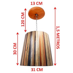 Luminária De Teto Pendente Em Madeira Média Redonda De 1,5m -