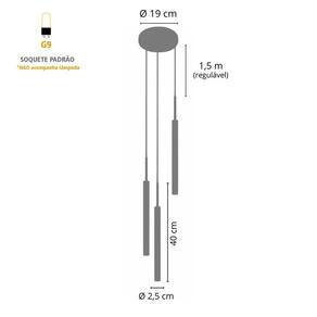 Luminária De Teto Pendente Tubo Triplo Sala Ilha Mesa Prata