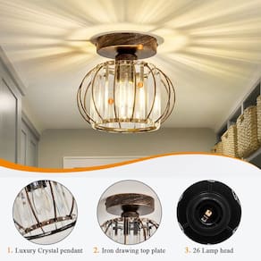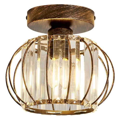 YYJLX Luminária de teto de montagem semiembutida E26 mini lustre de cristal bronze polido a óleo lâmpada de teto pequena para entrada quarto banheiro corredor armário foyer luz - PROJETO PERTO DA LUZ DE TETO - Lustre de montagem semi embutida com aparência elegante e rústica, não apenas uma iluminação de casa de fazenda, mas também uma bela decoração moderna. O design de montagem embutida de teto interno cria um ambiente confortável e moderno para sua casa. - Iluminação de cristal brilhante -- Sombra metálica com acabamento em bronze polido a óleo com cristal brilhante (24 peças) como decoração. Tão elegante e moderna luz semi-embutida de teto interno é feita à mão! - TAMANHO DA LÂMPADA DE TETO -- Lustre de teto de bronze interno luz cristal metal sombra diâmetro: W 19 cm, a base L: 12 cm; altura total da luz do candeeiro: 18 cm. Tipo de base: E26 [Lâmpada não incluída]. Watt: 60 watts máx. Você pode instalá-lo no quarto, sala de jantar e jardim de entrada, as lâmpadas precisam ser montadas. - Decoração de fixação de luz – a luz de montagem semi embutida será um bom presente de decoração de iluminação antiga para reforma de casa, inauguração de casa, Dia dos Namorados, aniversário, casamentos, festas, decoração de férias ou outros eventos especiais. - Aplicação de fixação de luz de montagem de fluxo -- A luminária de casa de fazenda é adequada para quarto, salão de beleza, sala de jantar, sala de estar, sala de estudo, banheiro, estante, corredor, varanda, gazebo, etc.