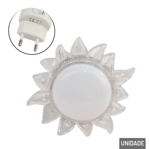 Luminária de Tomada Bivolt Sol A Luminária de Tomada Bivolt formato lúdico de Sol é a escolha perfeita para adicionar um toque encantador e acolhedor ao seu espaço. Com um design delicado e sofisticado, ela traz a magia do céu noturno para o ambiente, criando uma atmosfera tranquila e inspiradora. Sua linda formas de Sol transmite um charme único, ideal para quartos, salas, escritórios e até como luz noturna para crianças.\nEsse abajur de tomada é perfeito para ambientes com pouca iluminação. Prático para levar em viagens, não ocupa muito espaço na mala. Ideal para o quartos, salas e lugares com pouca iluminação, proporcionando iluminação branda e aconchegante.\nPossui botão liga/desliga. Voltagem: Bivolt.\nEspecificações:\nMarca : TINGS\nTipo de material : Componentes Eletrônicos, Plástico\nCores ou Estampa : Branco\nDimensões do Produto : 6,5 X 6,5 X 7 CM\nDimensões da Embalagem : 12 X 9,5 X 7 CM\nPeso Bruto (Gramas) : 0.028