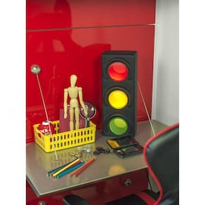 Luminária Decorativa de Mesa Sinaleira - Preto Preto. Utiliza duas lâmpadas LED ou fluorescentes compactas de até 15W (não inclusas). Cabo com interruptor medindo 1,8,m. Sinalize seu estilo! *Aceita alguns tamanhos de lâmpada LED, que passem pela abertura.