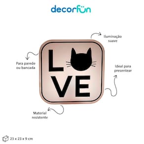 Luminária Decorativa Gatos - Iluminação Indireta Elegante Para Mesa E Parede Transforme seu ambiente com a Luminária Decorativa Love Cats, a peça que combina charme e elegância com a paixão por gatos! Este item indispensável é a escolha perfeita para os amantes desses felinos, trazendo uma iluminação indireta suave que cria a atmosfera ideal para qualquer cômodo da sua casa. Seja no quarto, na sala de estar ou até mesmo no escritório, a Love Cats é a adição que faltava para deixar o seu espaço mais acolhedor e convidativo.Fabricada com materiais de alta qualidade, a Luminária Love Cats garante durabilidade e um design encantador, que certamente conquistará o coração de todos. Seu estilo criativo e divertido apresenta silhuetas de gatinhos que irão fazer sua decoração brilhar, refletindo a personalidade de quem é apaixonado por esses animais. Cada detalhe foi pensado para adicionar uma dose extra de charme e beleza ao seu lar.A iluminação indireta da Luminária Love Cats é ideal para quem busca um toque especial sem abrir mão do conforto visual. Ao invés de luzes intensas, ela cria uma luminosidade suave que proporciona um ambiente relaxante, perfeito para momentos de leitura, estudo ou apenas para desfrutar de um bom filme. É a escolha certa para quem valoriza a harmonia no espaço em que vive.Instalá-la é extremamente simples! Você pode fixá-la na parede ou posicioná-la sobre a mesa, conforme a sua preferência e necessidade de espaço. Com um design versátil, ela se adapta a diferentes estilos de decoração, tornando-se uma peça central em sua casa. Além disso, a Luminária Love Cats é fácil de limpar e manter, garantindo que a sua beleza permaneça intacta por muito tempo.Não deixe passar a oportunidade de dar um toque especial e único ao seu lar com a Luminária Decorativa Love Cats. Ideal também para presentear amigos e familiares que compartilham a sua paixão pelos gatos, este é mais que um simples objeto de decoração; é uma verdadeira declaração de amor pelos felinos. Adquira já a sua e ilumine a sua vida com estilo e carinho! Marca: Não Informado