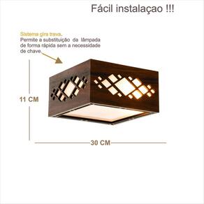 Luminária decorativa madeira plafon pipa 30cm Cor: pau ferro A iluminação certa pode transformar um ambiente, deixando-o mais requintado, confortável e aconchegante. Nossas luminárias são criadas e desenvolvidas com a intenção fazer essa transformação, pois são construídas com material de primeira e com projetos muito bem elaborados, unindo beleza, funcionalidade e bom gosto. Conseguimos com elas, fazer o casamento do acrílico, alumínio e madeira de maneira harmônica. Especificações técnicas Dimensões: Comprimento: 30cm Largura: 30 cm Altura: 11 cm Peso: 2,5 kg Qtde de lâmpadas: 2 led 6 a 15 w Alimentação: bivolt 110/220 Material: Difusor em acrílico leitoso Mdf primeira qualidade Soquete e27 Fio de ligação cobre 1,5mm Acessórios de fixação e sustentação Cor mdf: marron pf Limpeza: utilizar um pano macio flanela levemente umedecido com água ou lustra móveis : 6 meses contra defeito de fabricação. Marca: creatus Ambientes Residenciais Nossas luminárias podem ser instaladas em qualquer cômodo da casa, pois com certeza tornará o ambiente mais bonito e harmonioso. Empresas As nossas luminárias também tem a função de alegrar ambientes empresariais, pois deixam o ambiente mais leve bonito e suave. Embalagem Nossas luminárias são muito bem embaladas, fazendo com que os riscos no transporte sejam reduzidos a quase nada. Caso acontecer um eventual dano no transporte, fazemos a reposição sem custo. Observação - lâmpadas não inclusas - utilizar somente lâmpadas de led - acompanha manual de instalação - acompanham os soquetes e o fio necessário para a instalação da luminária na rede elétrica. - uso exclusivo para ambiente interno Ean: 7893804009224