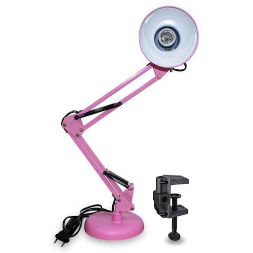 Contém: 01 - Luminária de Mesa Articulável Base Normal e Garra Rosa