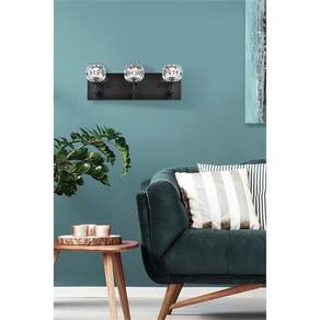 A iluminação adiciona elegância, estilo, sofisticação e embeleza seus espaços de casa ou escritório. A iluminação é a parte mais integral de qualquer espaço interior. A iluminação certa faz com que até mesmo o espaço modesto pareça maior e elegante. Características. 10 pol. Luz de banheiro Graham 3Light. Feito com metal de ferro e bola de cristal facetada transparente K9. Especificações. Cor de cristal transparente. Acabamento de hardware preto. Coleção Graham. Estilo moderno. Extensão 5. Comprimento do fio 10. Regulável Sim. Tipo de soquete G9. Número de luzes 3. Potência/lâmpada 20. Potência máxima/nominal 60. Fio incluído Sim. ETL Sim. Material de hardware: Ferro. Material de fixação Ferro e cristal. Montagem necessária Sim. Seco/molhado/úmido e seco. Dimensão 6 A x 18 L x 5 P