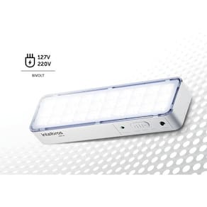 Aplicação Ambiente interno Autonomia 4 horas fluxo mínimo / 2 horas fluxo máximo Fluxo luminoso 50 lumens fluxo mínimo / 100 lumens fluxo máximo Bateria de lítio 3,7 Vdc 500 MAh Tempo de carga 24h 220 V / 48h 127 V Tensão de alimentação 100 a 240 Vac 50/60 Hz