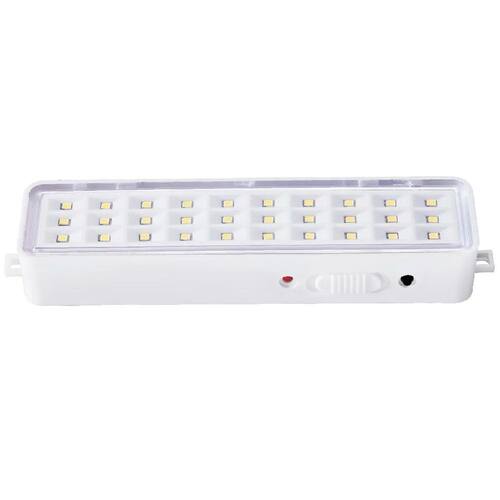 Luminária Emergência Branco Portátil Recarregável Lanterna A luminária 30 LEDs foi fabricada com a tecnologia LED, desenvolvida para iluminação de emergência. Pode ser utilizada em ambientes internos e é ideal para escritórios, hotéis, restaurantes, estabelecimentos comerciais, residências entre outros. Possui bateria de lítio, que proporciona uma vida útil mais longa e uma melhor performance do produto. Seu design moderno foi pensado para que se adeque aos mais diversos ambientes, harmonizando com a arquitetura do espaço e trazendo ainda mais elegância ao projeto. Econômica, proporciona autonomia com maior durabilidade e ótima iluminação. Pode ser facilmente instalada, manuseada e transportada. Acende automaticamente na falta de energia elétrica. Informações TÉCNICAS: Fluxo luminoso máximo: 100 lúmens Quantidade de LEDs: 30 Área de Cobertura: 25m Led indicativo de funcionamento: Sim Seleção de fluxo máx. E min.: Sim Bateria: 3.7 V 500 mAh Alimentação: 100-240 V 50-60 Hz Consumo de energia: 1 W Autonomia: 2,5 horas máx//5 horas mín Temperatura de operação: -10C a 60 C 01h70C Temperatura de cor do LED: 5700 K - 8000 K Grau de proteção: IP20 Peso: 125 g Dimensões: 175 x 49 x 25 mm Materiais de construção: PP/PS Botão de teste: Sim Marca: Não Informado Ean: 7905609825678
