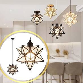 A luminária pendente estrela Gimpo, modelo KJDD-E-005, é uma peça incrível de iluminação. Com um toque moderno, geométrico, proporciona um acabamento visual fantástico Desperta admiração e se torna o centro das atenções. É ideal para iluminar diversos ambientes, tais como: quartos, cabeceiras, salas, ilhas de cozinha, mesas de jantar, halls, corredores, varandas, banheiros, lavabos, penteadeiras, bares, cafés, restaurantes, consultórios, clínicas, salões, etc. Pode ser utilizado individualmente ou em composições com outros pendentes.