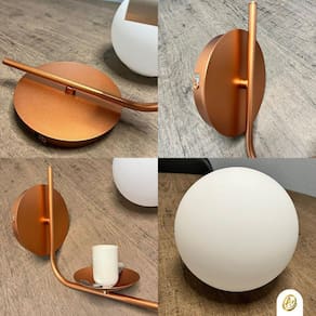 Cor: Cobre-Fosco Indicação de Lâmpada: Bulbo A60 Quantidade de Lâmpadas: 1 Bulbo não inclusa Soquete: E27 Ambientes Indicados: Hall de Entrada / Sala de Jantar / Sala de Estar / Escritório / Dormitório / Varanda / Lavabo Medida diâmetro x altura : 15cm x 22cm Material: Alumínio/Vidro